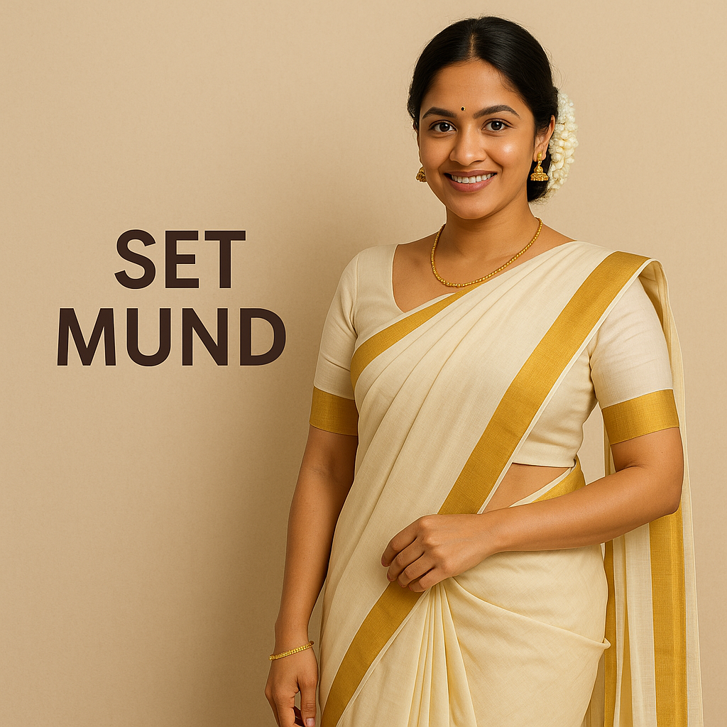 The Set Mundu is Kerala’s most iconic traditional attire, celebrated for its elegant simplicity and cultural richness. Woven in pure cotton with a signature cream base and golden kasavu borders, the Set Mundu reflects the grace and heritage of Kerala’s festivals, weddings, and cultural occasions.